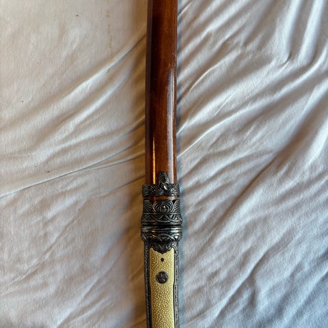 Bruk: Disse brukes i dag primært som samleobjekter innen militaria. Materiale: tre. Farge: brun med lyse utskjæringer.