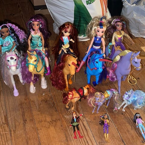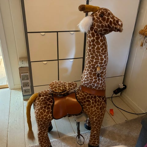 Nydelig Enhjørning sykkel . Hjulene ruller og hesten går bortover når du trår . Fra 3 - 6 år .
