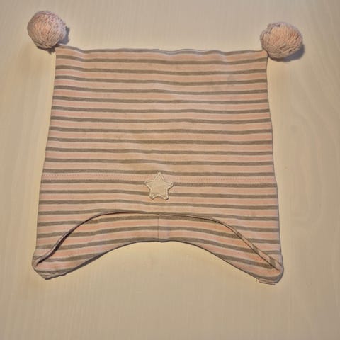 Rosa stripete bomullslue fra kivat. Størrelse 2. Flekk på baksiden. Kroner 75