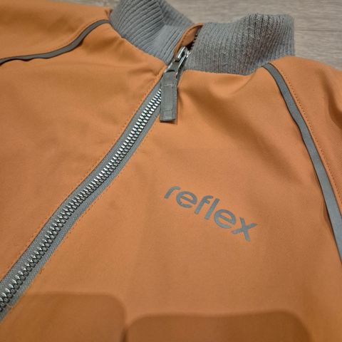 Pent brukt rød vårdress med refleks. Ingen hull. Mangler hette. Nylon og polyester materiale. Noe slitt på den ene refleksen(se bilde).