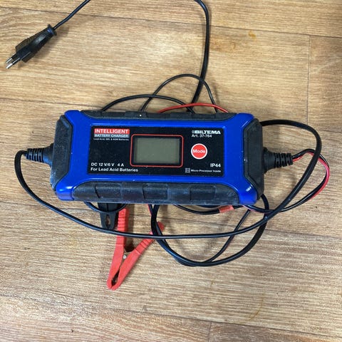 Automatisk batterilader for 12/6V-batteri. Egnet for lading og vedlikehold av vanlige 12V-bilbatterier og lignende blybatterier. Lader med 4A.