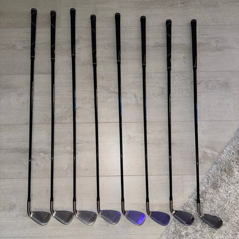 Settet består av følgende køller:4, 5, 6, 7, 8, 9, Pitching Wedge (P) og Sand Wedge (S) og golfbag