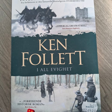 Ken Follett I all evighet bok. Roman innen historisk litteratur. Trykt i norsk språkdrakt. Pocketutgave. Egner seg for lesere som liker omfattende historiske fortellinger satt til middelalderen.