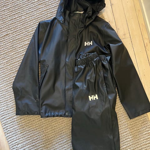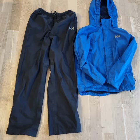 Regnsett bestående av jakke fra helly hansen (140) og bukse fra stormberg.