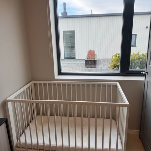 En tidløs sprinkelseng med praktiske detaljer som lar babyen sove trygt til det er på tide med en «ordentlig» seng. Etter hvert som babyen blir større kan du flytte sengebunnen ned og fjerne en av langsidene.