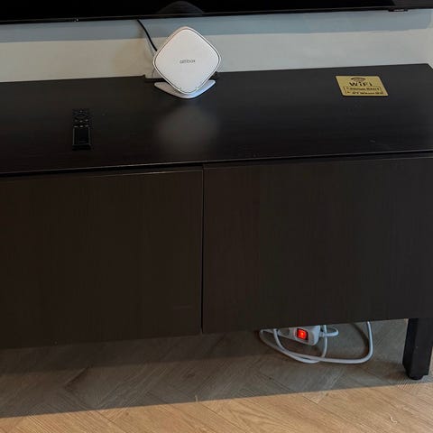 TV-benken er pent brukt uten noe merkbare bruksmerker.