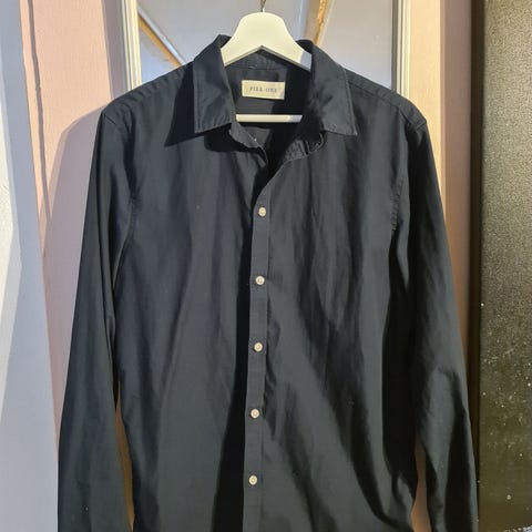 Eton skjorte for herre i størrelse M. Skjorten er blå og laget av bomull. Slim modell med krage og lange ermer, egnet til både formelle og uformelle anledninger. Kan brukes alene eller under blazer eller genser.