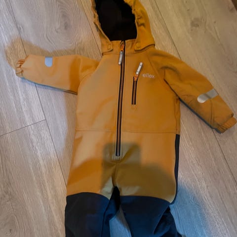 Bergans parkdress for barn i størrelse 86. Dressen er unisex og har hovedfarge oransje med mørke kontrastfelt. Materiale i polyester med nettingfôr på innsiden.