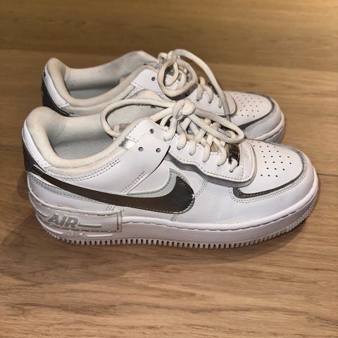 Air force 1 shadow selges billig da de ikke blir brukt. Skoene er i god stand og svært lite brukt, så her er det mye sko igjen for pengene. Dette er en utgått modell. Nypris var 1199,-. Str 39.
