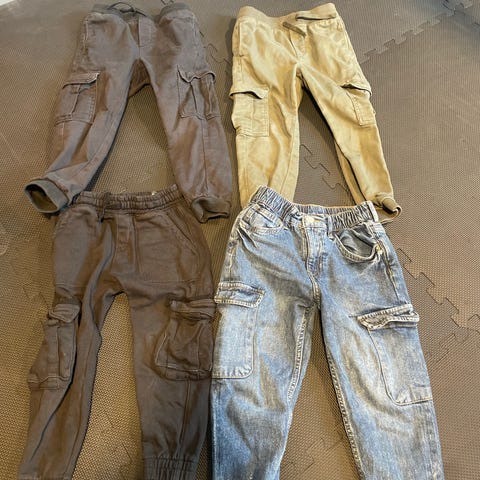 Selger fine buksepakke det er 5 stk bukser, den ene buksen i mørke grå farge er i str 140 og 4 stk i str 134. Kan sende hvis kjøpere betaler porto.