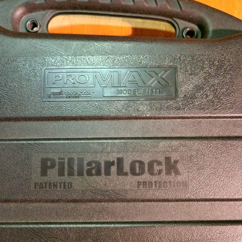 Selger våpenkoffert i aluminium da den ikke er i bruk. Den var polstring på innsiden og den kan låses på to av fire hengsler (de to andre er skadet og kan ikke festes lås på). Det er ellers noen riper etter turer med fly.