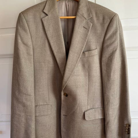 Pen dressjakke fra Giovanni i ull og cashmereblanding. Med skulderputer. Pent brukt med normal/liten bruksslitasje. Modellen på bildet er 190 cm høy og slank. Str 58.