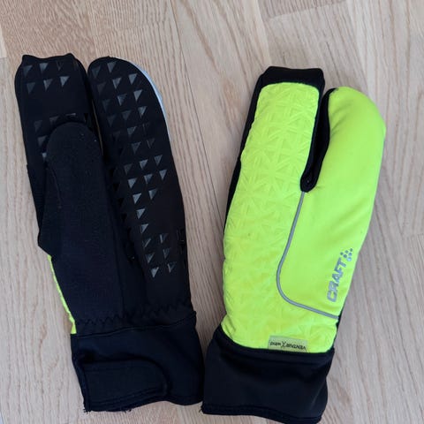 White hansker i svart farge. Modellen har vindtett ytterstoff, grepvennlig materiale i håndflaten og refleksdetaljer på oversiden. Egner seg til bruk i kaldt vær og til utendørsaktiviteter som sykling, løping eller tur.
