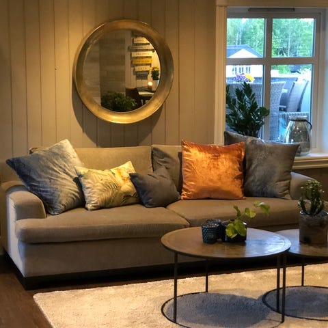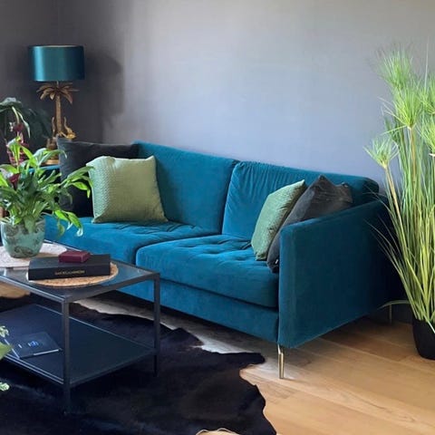 Nydelig Sofa ca 5 år gammel fra HKliving I gull farget velurstoff.