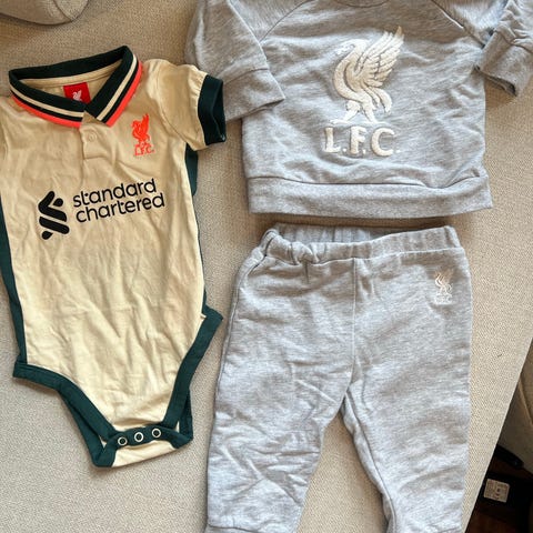 To helt ubrukte Liverpool bodyer str 50-62 (0-3mnd) selges samlet.