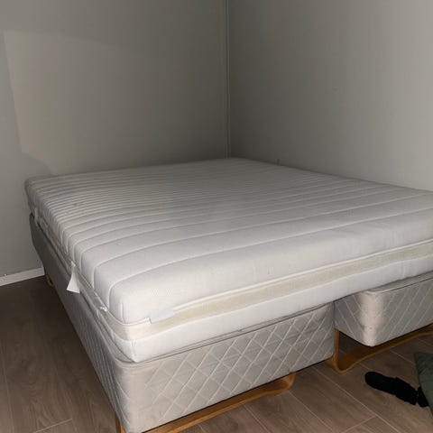 140 seng med madrass fra IKEA selges grunnet flytting, kun stått på gjesterom og kun brukt noen få ganger med beskyttelse og overmadrass på.