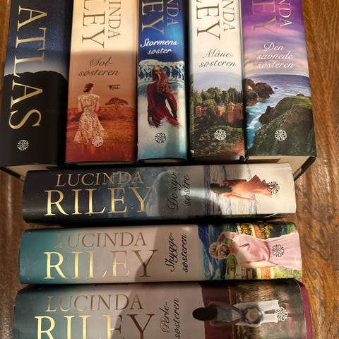Lucinda Riley bokserie med romaner. Bøkene er innbundet og har omslag med ulike motiver. Serien inneholder flere titler av samme forfatter, egnet for lesere som liker historiske og romantiske romaner. Passer til hjemmebibliotek eller som samleobjekt for lesere av Lucinda Riley.