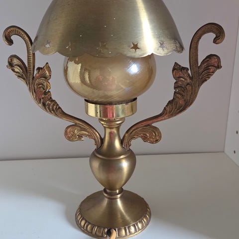 Nydelig vintage bordlampe i messing 28cm i bra stand .