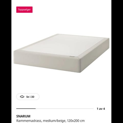 Ny pris 25.03 IKEA SNARUM rammemadrass enkeltseng lys beige