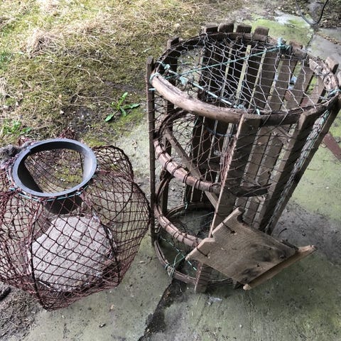 2 godt brukte teiner som kanskje passer best som maritimt dekor. 300 kr. for stykke.
