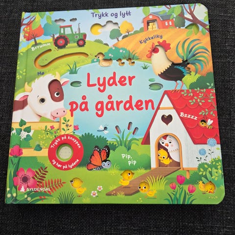 Gyldendal Lyder på byggeplassen pekebok med lyd. Kartongbok for barn med illustrasjoner av byggeplass og kjøretøy. Boken har innebygd lydmodul som spiller av ulike lyder fra byggeplassen når barnet trykker på angitte felter. Tekst på norsk. Egnet for små barn som vil utforske lyder og situasjoner fra en byggeplass.