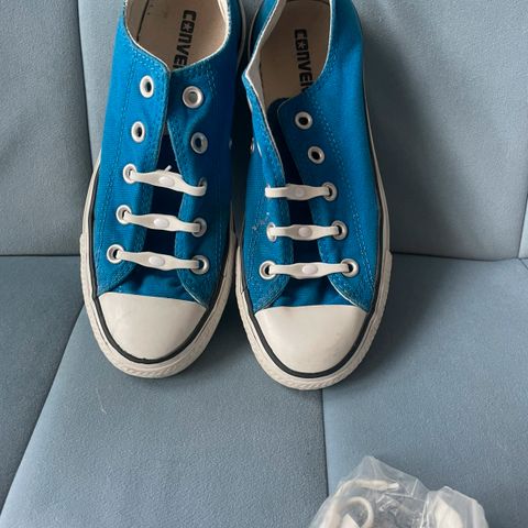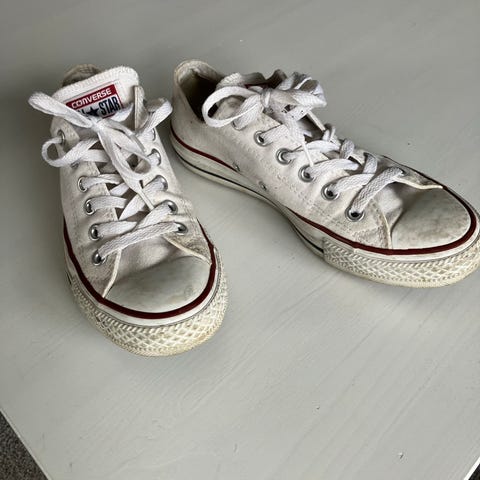 Converse lave sneakers i hvit farge for unisex barn. Klassisk modell med snøring og gummisåle med gummitå. Skoene har tekstiloverdel og karakteristisk rød stripe langs sålekanten. Egnet som hverdagssko og fritidssko.