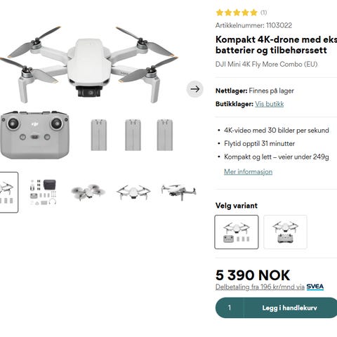 Dronen har derfor blitt stående lagret i original eske siden den ble kjøpt.