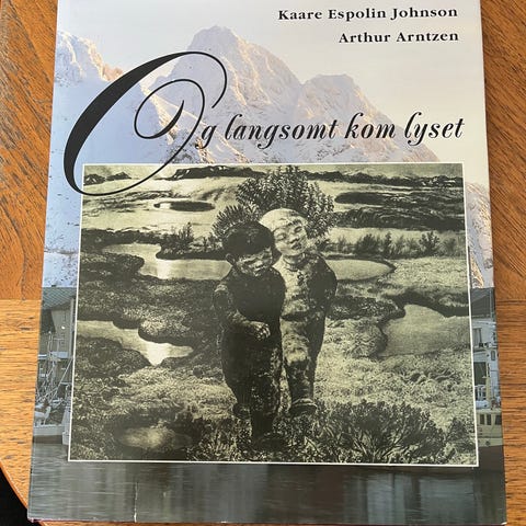 Bok med tittelen «Og langsomt kom lyset» av Kaare Espolin Johnson og Arthur Arntzen. Utgitt på Samlaget. Inneholder tekst og illustrasjoner/grafikk, med gjengivelser av Espolin Johnsons bilder kombinert med tekster av Arntzen. Innbundet utgave med omslag. Egner seg for lesere og samlere som er interessert i norsk kunst, illustrasjon og litteratur.