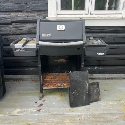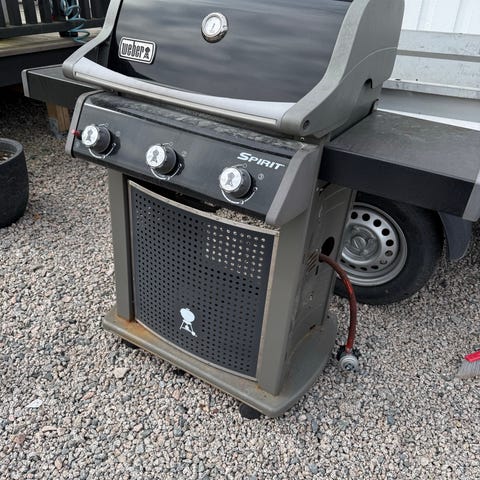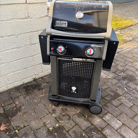 Veldig godt brukt Weber gassgrill. Selve grillen og lokket er fullt brukbart, men det er understellet som ruster opp. Kanskje noen bare trenger toppen feks til et utekjøkken? Må hentes. Haster - går snart på fyllinga om ingen henter den.