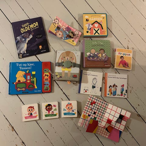 Noen få har tjukke pappsider/klaffer : det med 3 Nini-bøker og cric crac interaktiv bok også egnet til de minste.