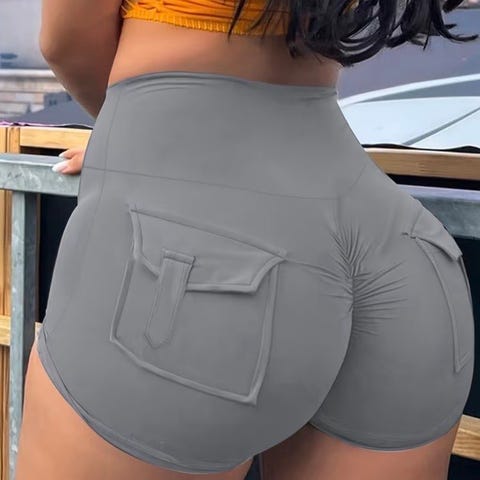 Treningsshorts for dame i størrelse S. Shortsen er oransje med melert mønster og har en tettsittende passform som egner seg til fitness og annen trening. Modellen er midjehøy og går til midt på låret, med elastisk liv uten synlige snøringer. Stoffet ser ut til å være et elastisk materiale som gir god bevegelsesfrihet under aktivitet.