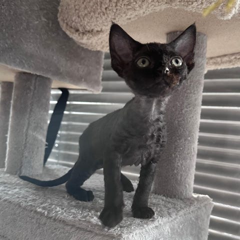 Vi har en nydelig Sphynx-kattunge på 12 uker som nå leter etter sitt kjærlige, for alltid hjem. Han er utrolig kosete og sosial, og elsker å være tett på mennesker.