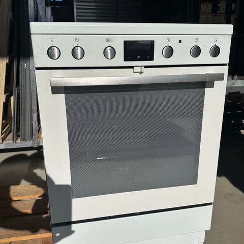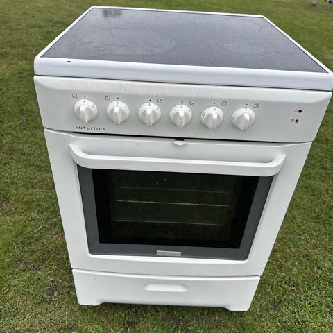 Komfyren fungerer fint og har keramisk koketopp og varmluftsovn.