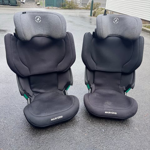 Trekk og polstring gir komfort for barnet under kjøring. Stolen har tydelige illustrasjoner på siden som viser korrekt plassering av barnet og belteføring. Det anbefales å kontrollere kompatibilitet med egen bil og følge bruksanvisningen fra Maxi-Cosi ved montering og bruk