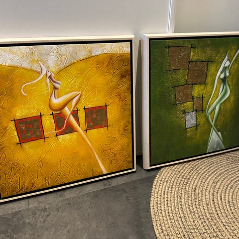 Alle maleriene er innrammet med lyse eller metalliske rammer, tilpasset veggoppheng. Bildene egner seg som veggdekor i stue, gang, kontor eller andre oppholdsrom, og kan henges samlet som en serie eller hver for seg etter ønsket uttrykk.