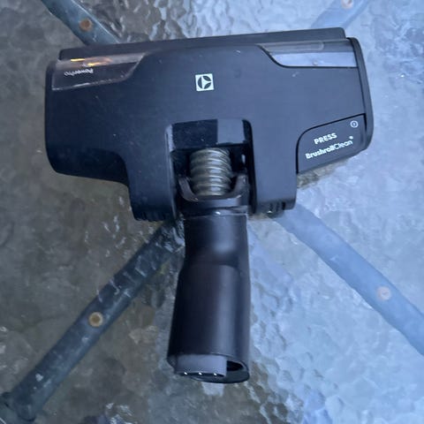 Electrolux støvsugerbørste til støvsuger. Børsten har bred munnstykke-del med roterende børste og håndtak med feste som passer til kompatible Electrolux-støvsugere. Egner seg til rengjøring av gulv og andre flater der en motorisert eller mekanisk børste er ønskelig. Fargekombinasjon i hovedsak grå og svart med detaljer i oransje.