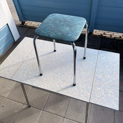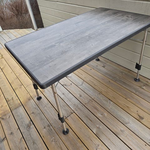 Lite brukt sammenleggbar campingbord med 4 stole. Lett å sette opp. Mål når satt opp 65 cm x 85 cm x 66 cm. Satt sammen: 85 cm x 32 vi (+ håndtak = 39 cm) x 10 cm.