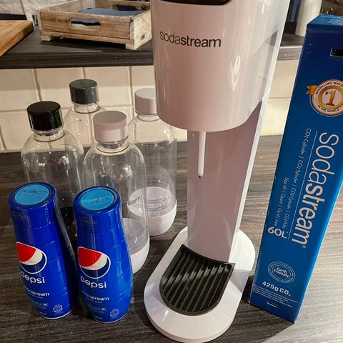 Selger da den ikke blir brukt. En lite brukt kullsyre patron inni maskinen og en ubrukte følger med. Flaskene er dessverre forsvunnet eller ødelagt.