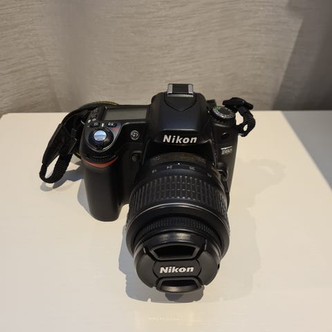 Selger min Nikon D3000 speilreflekskamera. Kameraet har innebygd skjerm på baksiden for visning av bilder og navigering i menyer, samt optisk søker. Det følger med kamerareim, kameraveske og lader/batteri, samt et 8GB minnekort :)