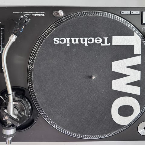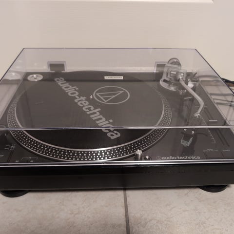 Audio Technica stift på en exibel platespiller med USB-tilkobling og RCA-utganger.