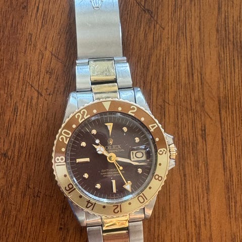 Fullt restaurert GMT Master no crown guard ca 1958 i meget flott og nærmest ny stand. Fullt overhalt av sveitsisk urmaker og fungerer i dag som en meget solid daily beater om en ønsker det.