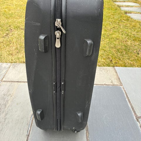 Brukt noen ganger så den har noen bruksmerker og riper i plasten, men ingenting som påvirker funksjonen. Glidelåser og alt inni fungerer bra.
