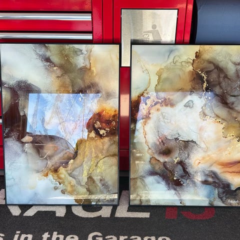 veggbilder med hjerte motiv i grå og hvite toner. Settet består av to kvadratiske bilder med strukturert overflate og abstrakt hjerte-design. Passer som veggdekor i stue, soverom eller gang. Fargene går i nøytrale grånyanser med lyse kontraster som gjør at bildene kan kombineres med ulik innredning.