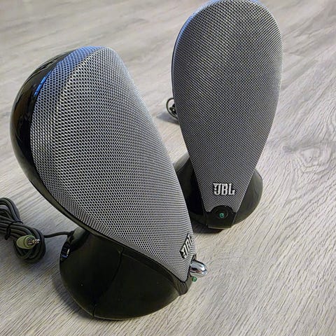 JBL høyttaler i kompakt bordmodell. Strømtilkobling via ledning. Egnet til bruk sammen med for eksempel PC, mobil eller andre lydkilder med kompatibel tilkobling. Nøytral, mørk farge som passer inn i de fleste rom og oppsett.