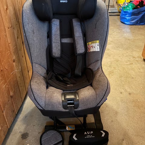 Axkid barnesete med maksvekt 25 kg. Setet er bakovervendt og har intern 5-punktssele. Det har grå trekk med svarte detaljer og justerbar støttefot bak. Selen har polstrede skulderputer og regulerbare stropper. Setet festes med bilens bilbelte og har støtteben for ekstra stabilitet. Egnet for barn innenfor vektklassen opp til 25 kg, i tråd med merking på setet.