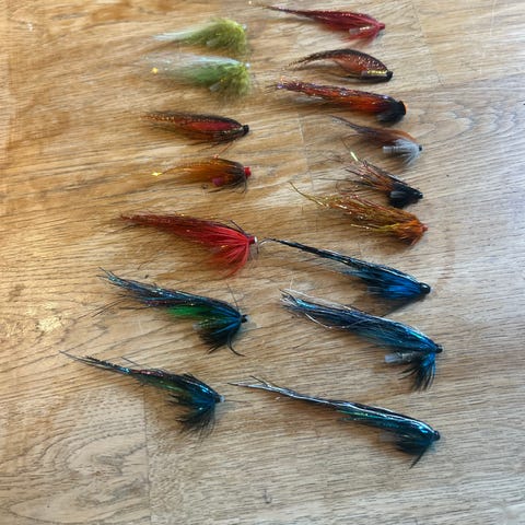 50 laksefluer av god kvalitet i diverse størrelser selges samlet