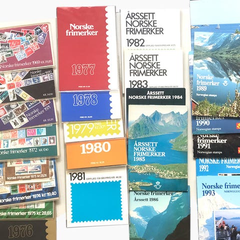 Årssett og mapper med frimerker