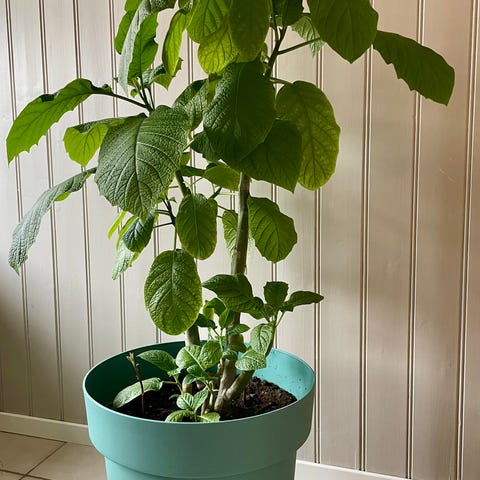 Engletrompet plante i potte med hvite, hengende trompetformede blomster. Over 2 meter høy. Kan beskjæres dersom en ønsker en «tettere» plante. Planten har flere stammer og nye skudd med grønne blader. Egner seg som prydplante, for eksempel i stor potte på terrasse, balkong eller i vinterhage. Trives lyst og lunt, og kan overvintres frostfritt. Selges som avbildet plante i potte. Blomstrer midt på sommeren med store hvite blomster som lukter nydelig😊