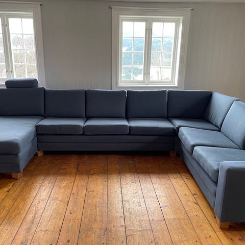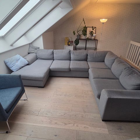 Stor og komfortabel U-sofa selges da vi ønsker å bytte stil i stuen. Sofaen er modellen Dubai U-modulsofa med divan fra Trademax.