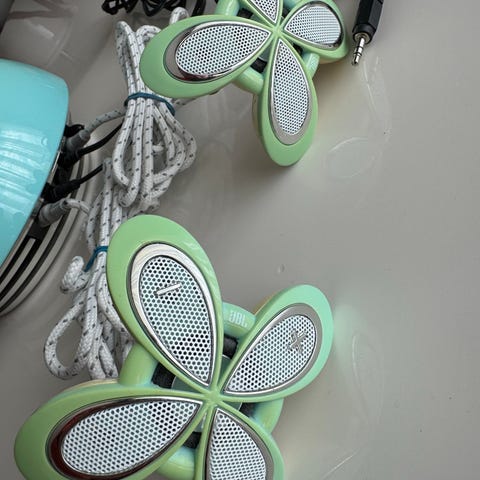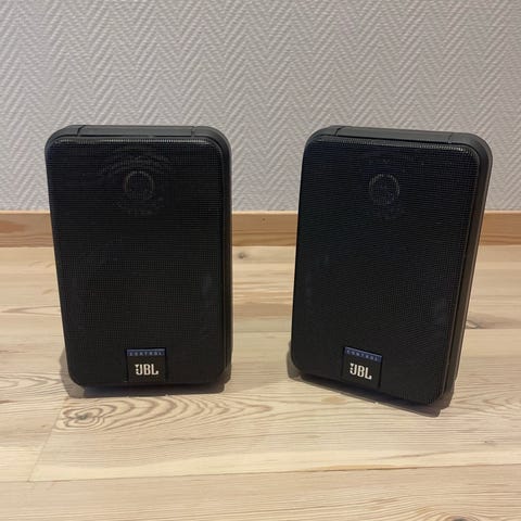 JBL høyttalersett med trådløs sender i svart. Settet består av to kompakte høyttalere, en trådløs senderenhet med antenne, fjernkontroll og tilhørende strømforsyninger/kabler. Senderenheten har RCA-innganger for tilkobling til lydkilde. Egnet for bruk sammen med TV, stereoanlegg eller andre lydkilder der man ønsker trådløs overføring til høyttalerne.